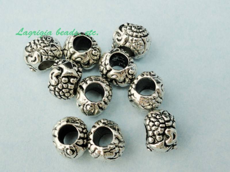 DIESER ARTIKEL IST FÜR: - 10 Großlochperlen - Größe: 8x9x10 - Lochgröße: 4 mm - Farbe: Silber - Material: Blei- und nickelfreies Zinn 10 Großlochperlen Silver Pewter - Großhandel