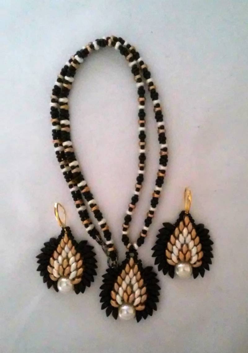 2 Stück Perlen Schmuck-Set; Magatama & Samen Halskette Und Ohrringe Set; Elfenbein-Schwarz-Gold Collier-Set; Geschenk Für Sie;