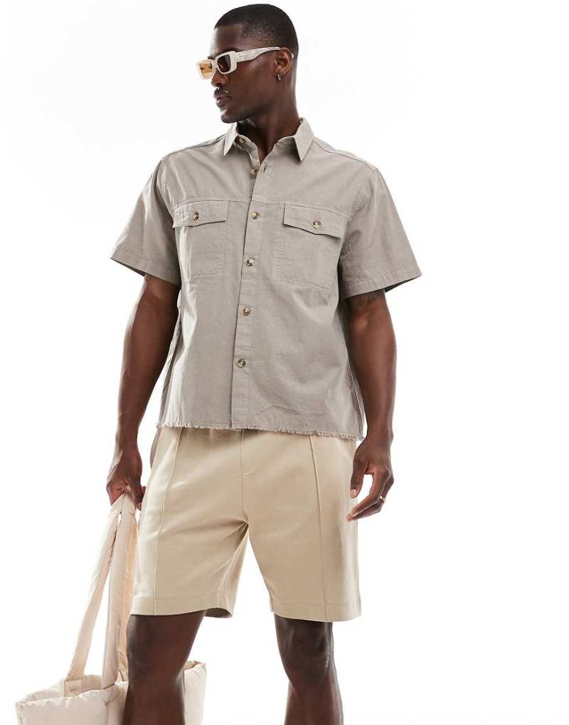 ASOS DESIGN - Kastiges Hemd in Grau mit lockerem Schnitt und unversäubertem Saum