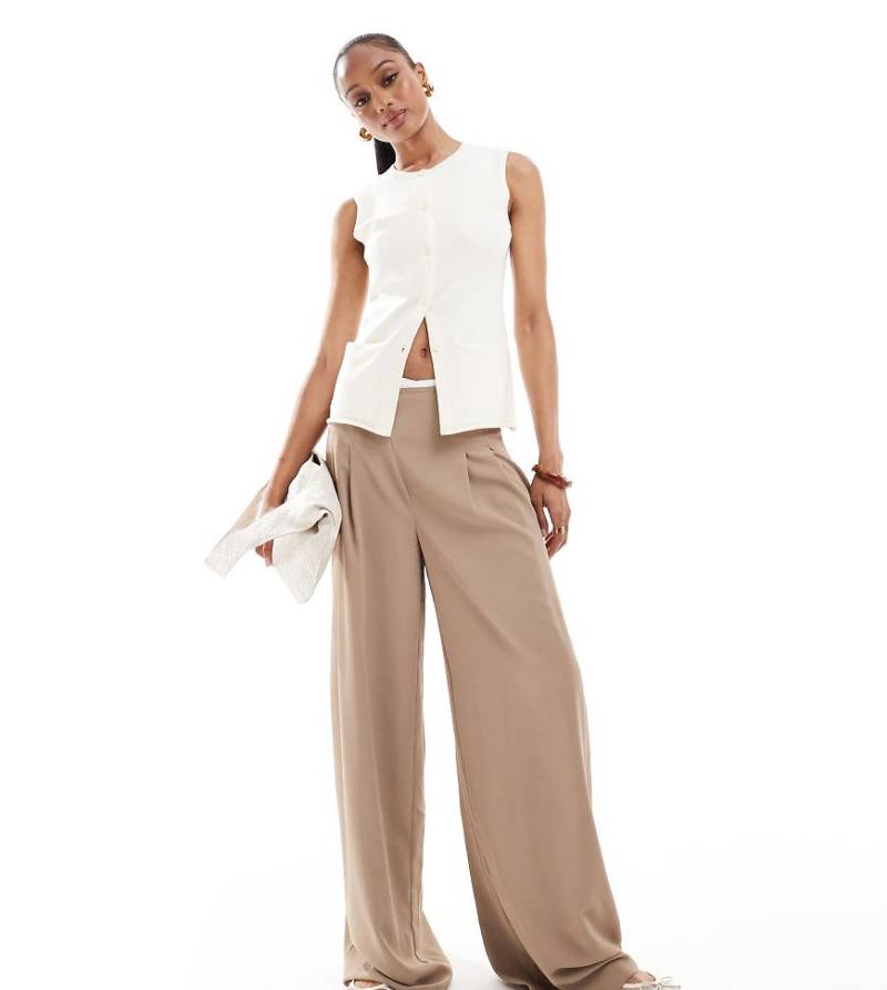 Hosen & Leggings von ASOS Tall Dein Stil gefällt uns Mittelhoher Schnitt abgesetzte Borten asymmetrischer Hosenschlitz Festgenähte Falten Weit geschnitten