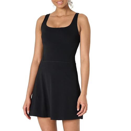 Amazon Essentials Damen Active FormFlex Tank-Tenniskleid in butterweicher Qualität mit integriertem Bodysuit, BH und Shorts, Schwarz, XXL