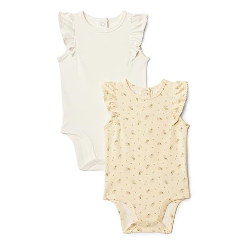 Amazon Essentials x Sofia Grainge Baby Mädchen Body mit gestickten Rüschen, 2er-Pack, Ditsy Blumen/Elfenbein, 3-6 Monate