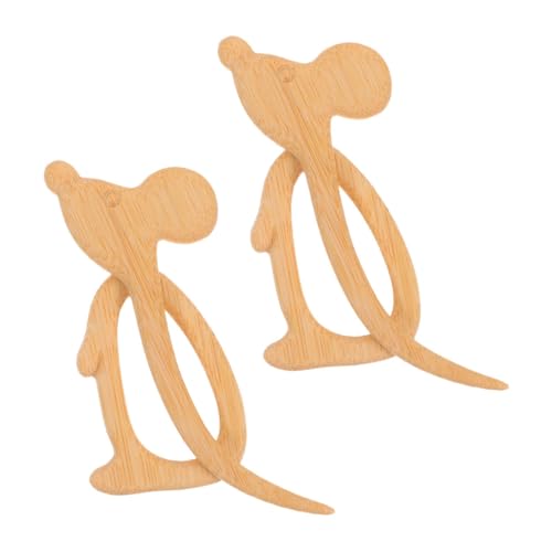 DEARMAMY 2 Stück Vintage Bambus Brosche Mäusemotiv Leichte Langlebige Tier-anstecknadeln für Damen Elegant als Schal Rucksack-accessoire Geeignet