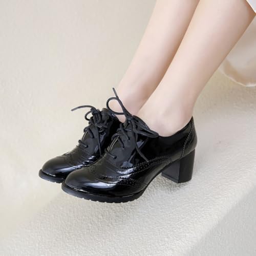 Dktoberfest Damenschuhe mit klobigem Absatz geschnitzter Retro-Spitze (Black, 38)