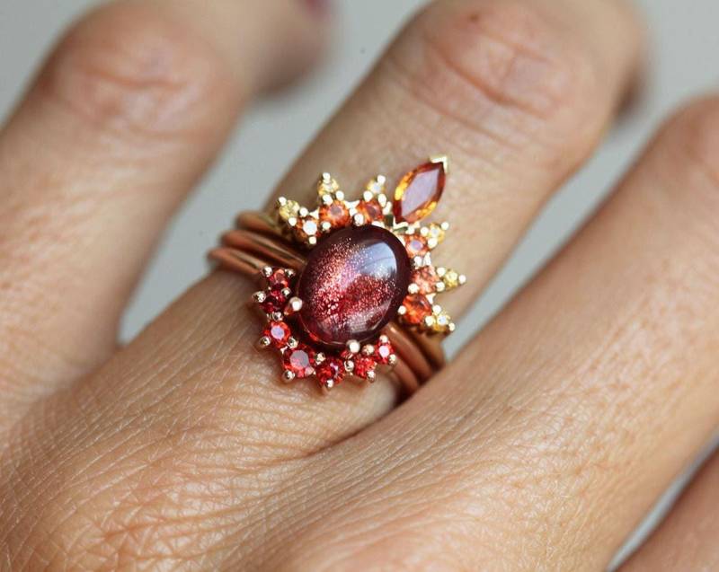 Flammen Ring-Set. Drei Ring Set. ORIGINALDESIGN von Minimalvs. Das Set auf den Bildern ist VERKAUFT. Wir können ein ähnliches Design mit einem neuen Stein herstellen. Bitte kontaktieren Sie uns vor dem Kauf für die Auswahl des Sonnensteins. Wunderschönes einzigartiges Ringset, das die Schönheit der Flamme mit Ombre-Schattenfarben darstellt. Perfektes Herbstteil. Dieser Preis ist für alle drei Ringe. Auf Wunsch sind auch individuelle Edelsteine möglich - bitte kontaktiere mich vor dem Kauf. WENN SIE EINEN BENUTZERDEFINIERTEN Ring wünschen, kontaktieren Sie mich bitte vor dem Kauf. PRODUKTDETAILS: Solitärring 9 x 7 mm großer oregon Sonnenstein. 1.9ct Schöne rote Farbe mit blitzendem Schiller auf der gesamten Fläche des Steins orange Saphire, gelb Saphire, leuchtend orange - rote Saphire, Saphire Top Qualität, VS Obere Krone - Marquis Saphir: 6 x 3 mm - runde Saphire: 2 mm (6), 1,5 mm (6) Untere Krone - runde Saphire: 6x 2 mm, 1x 2,5 mm - 585er Gold - wie abgebildet in den Farben Rosé- und Gelbgold online Verfügbare Größen: 3,5-8 (Größere und kleinere Größen sind verfügbar. Preis auf Anfrage.) Bitte gewünschte Größe beim Auschecken angeben. ARTIKEL WIRD MIT EXPRESS VERSAND - DHL EXPRESS VERSAND. Feuer Ring Mit Roten Und Orangen Saphiren, Einzigartige Herbst Verlobung