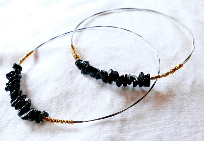 Handgefertigte Gitarrensaiten-Armbänder mit schwarzen Turmalin-Steinsplitterperlen aus der helix-Kollektion. schwarzer Turmalin wirkt erdend & unterstützend. er schützt, indem er negative Energie in positive Energie umwandelt. Dieser dunkle Stein enthüllt deine Kraft & Selbstvertrauen und stärkt dich durch Schwierigkeiten. Bitte geben Sie bei der Kaufabwicklung an, ob Sie einen kleinen, mittleren oder großen Armreif möchten. Für unseren einfachen Armreifgrößen-Ratgeber Gitarrensaite Und Schwarzer Turmalin Armreif