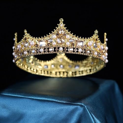 Haarschmuck Krone Tiaras für Frauen Europäischer Gerichtshof Retro Barock Königin Kronperlenlegierung runde Braut Kopfbedeckungshochzeitszubehör Krone (Farbe: Silberverzerrte, Größe: Diademe)