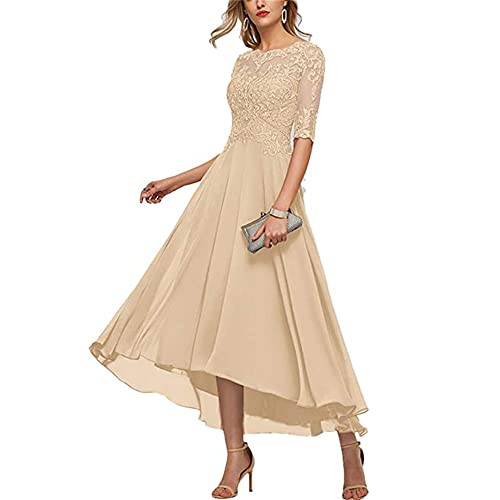 JIAALU Brautmutterkleid Spitze Ballkleider 1/2 Ärmel Chiffon Spitze Ballkleider Rundhalsausschnitt Abendkleid A-Linie Lang Spitzen Mutter der Braut Kleider