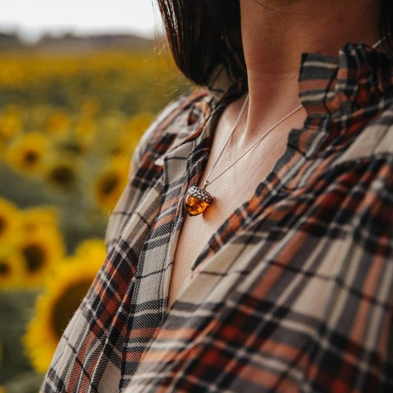 Kette Bernstein-Eichel II Eine wunderschöne Kette mit leuchtendem Schmuckstein, die auch Dein inneres Strahlen besonders zur Geltung bringt: unsere Kette Bernstein-Eichel. Bereits die Germanen und Kelten sahen die Eichen als geweihten Baum an, da sie Unsterblichkeit, Standhaftigkeit, Kraft und Stärke symbolisiert. Die Kette Bernstein-Eichel sieht also nicht nur richtig hübsch aus, sondern verkörpert auch tolle Eigenschaften. Größe des Anhängers: 1,5cm Material Anhänger und Kette: Sterling Silber, Bernstein Passt perfekt zu: Ohrringe Bernsteineichel II Andere verfügbare Materialien: Sterling Silber Vergoldet Alle Artikel von Luna et Noctua: | Kette Bernstein Eichel Ii