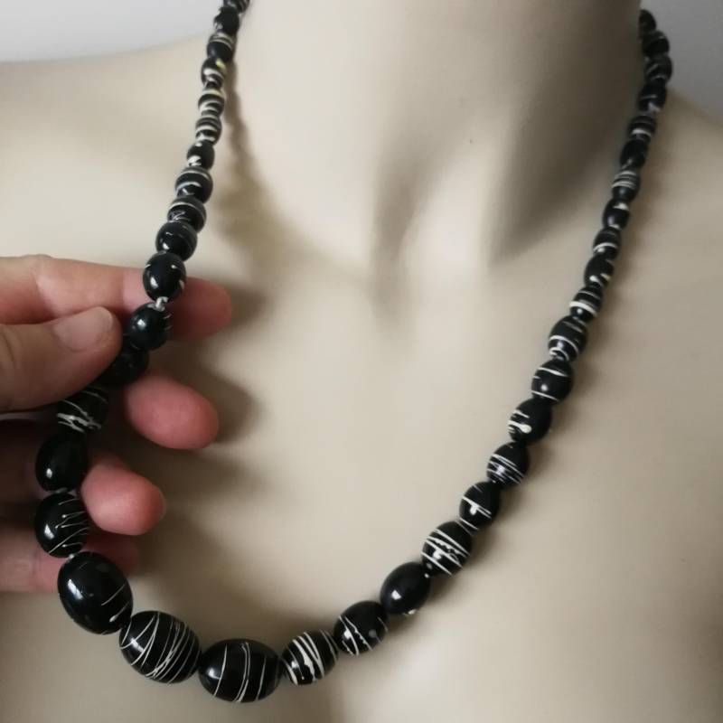 Halskette - Perlenkette mit weiß aufgemalten Streifen Versandkostenfrei mit jedem anderen Artikel in Großbritannien Kette - Schwarz Mit Weißen Gemalten Streifen