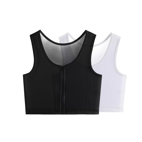 Kreeqe Brustbinde, Transgender-Sachen mit Reißverschluss, halb flach, Tanktop für Cosplay, FTM-BH, Binder-BH, 2er-Pack, Large