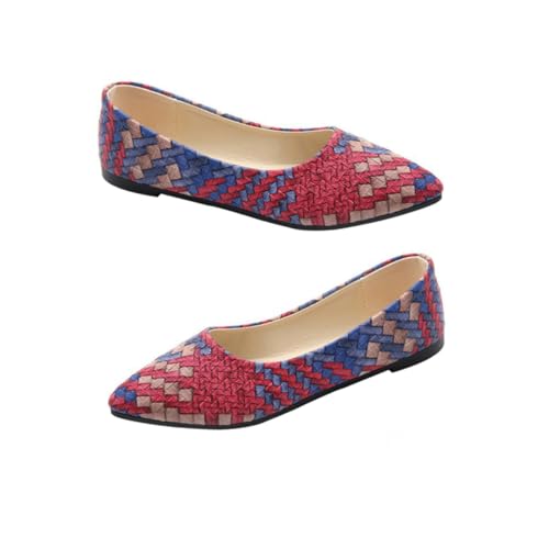 LarDorLin Ballerina Flach Damen Square Toe Ballet Dolly Schuhe Sommer Strand Komfort Ohne Verschluss Draußen Hochzeit Flach Schuhe Rose-Rot Gr 37 EU (38 Cn)