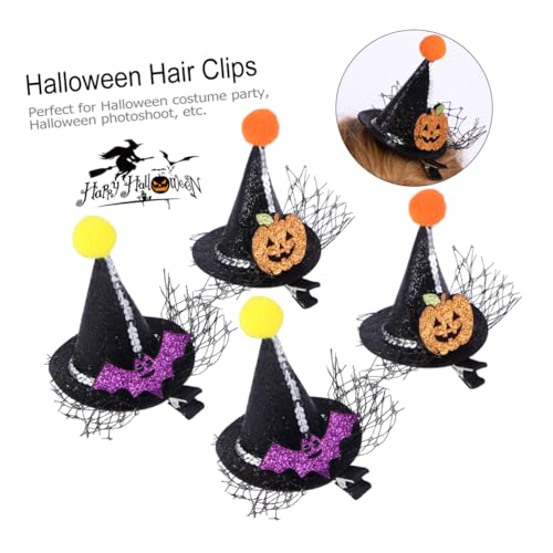 LOORGVEL 4 Stück Teiliges Halloween Haarschmuck Spitze Hexenhut Haarclips Modisch Langlebig für Damen Teenager Geeignet für Festivals Themenpartys