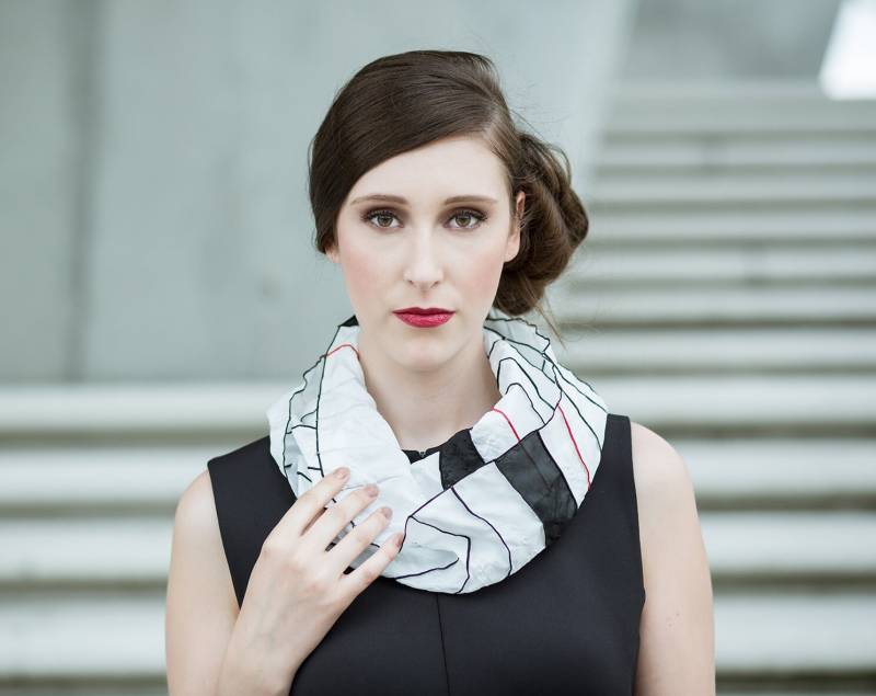 Loopschal in Schwarz-Weiß Mit Rotem Akzent, Seidenloop, Handgemachter Schal, Weicher Halsschmuck, Pongéseide