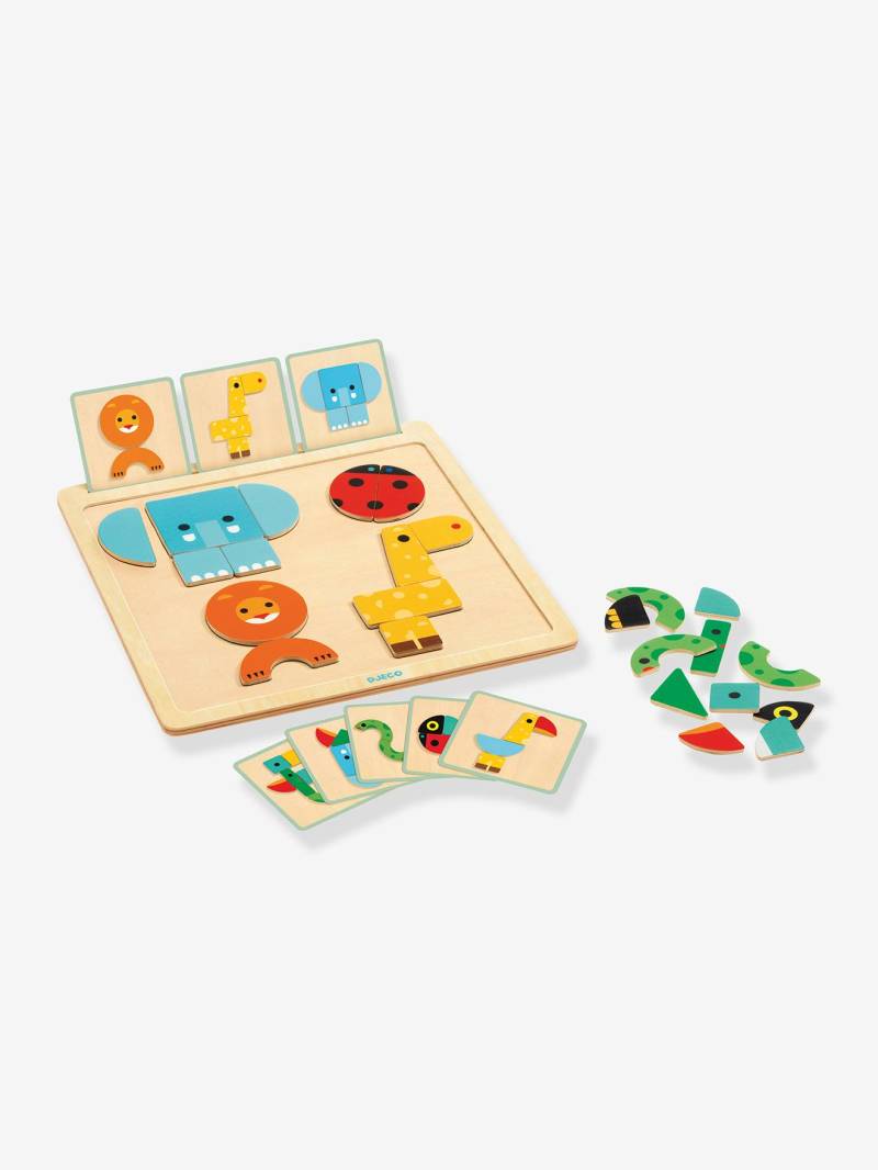 Magnetpuzzle ,,GeoBasic" DJECO Holz FSC Besonderheiten: Auf dem Metallbrett lassen sich die magnetischen Tierteile anhand der Beispielkarten zu lustigen Tieren zusammensetzen Material: Holz, FSC®-zertifiziert Spielbrett: Holz/Metall Maße: Spielbrett: 30 x 30 cm Details: 24 illustrierte Holzteile mit Magnet 8 doppelseitige Karten Spielbrett mit Schlitz für Beispielkarte 2 Schwierigkeitsstufen: Tiere in gleicher Farbe legen oder verrückte Tiere in verschiedenen Farben legen Hinweis: Altersempfehlung: Ab 2 Jahren Sicherheitshinweis: Nicht für Kinder unter drei Jahren geeignet. Erstickungsgefahr aufgrund verschluckbarer Kleinteile.