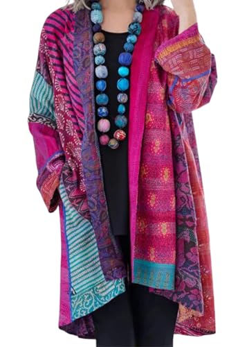 Oanviso Vintage Jacke Damen Boho Bunt Ethnische Retro Mantel Poncho Cape Elegant Schal Mit Ärmeln Strickjacke Langarm Offene Front Cardigan Kimono Strand Loose Lange Longjacke Rosarot 3XL