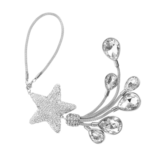 Operitacx Funkelnder Auto Rückspiegel Anhänger mit Strasssteinen Sternförmiger Auto Dekorationsanhänger für Damen Einfache Montage Modischer Innenraum Schmuck