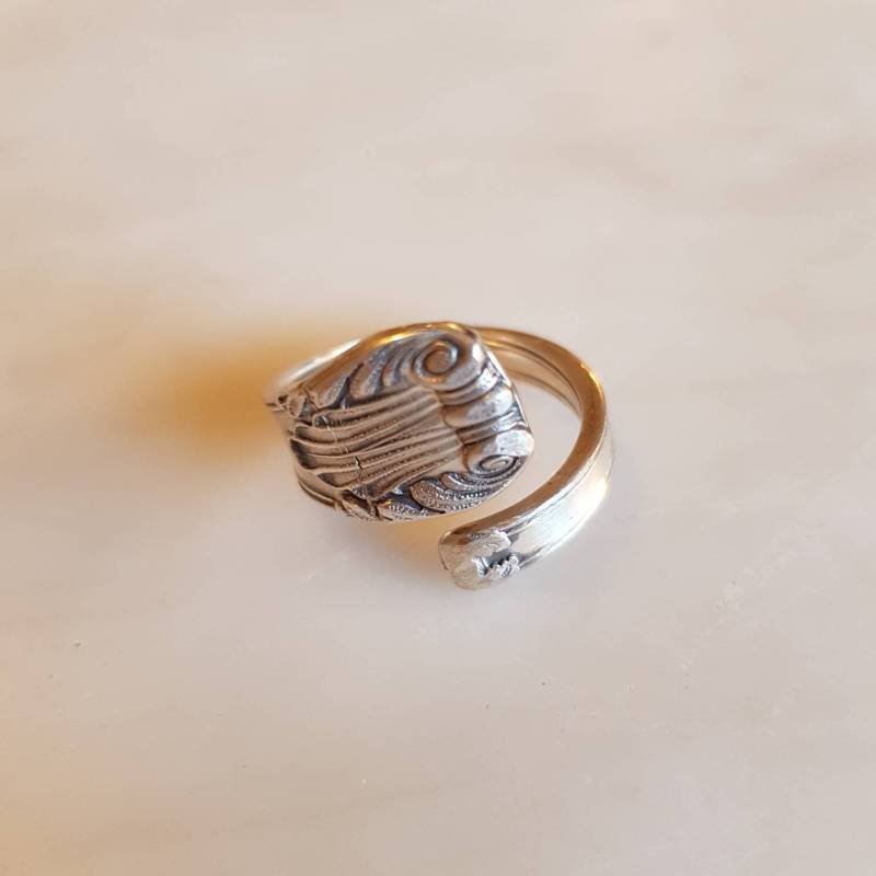 Ring, der durch die Bearbeitung eines Teelöffelgriffs aus 800er Silber entstanden ist. Maße: 19 mm Durchmesser Kontaktieren Sie mich, um eine andere als die oben genannte Messung anzupassen. Das Foto mit der Hand zeigt den zum Verkauf stehenden Artikel. Ringlöffel Schmuckbesteck Mit Silbernem Griff