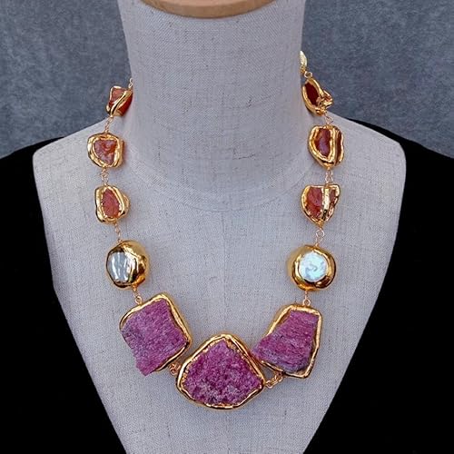 SLXWSXZE Rough Red Ruby Rough Carnelian Cultured White Pearl Necklace