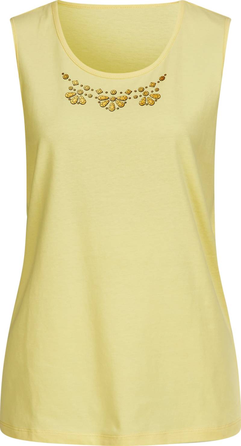 Auf dieses Shirttop freut sich Ihr Kleiderschrank schon lange! Platzierter, goldfarbener Foliendruck am Ausschnitt.