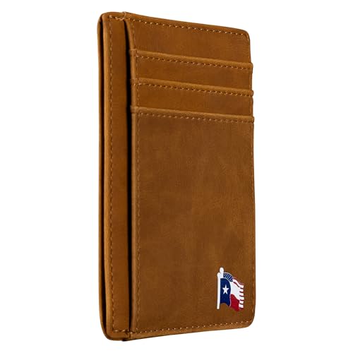 Slim Front Pocket Wallet PU Leather Khaki Card Holder RFID Blocking with Texas Souvenir Logo Gift for Texans and their lovers, Khaki, Texas und USA Flagge auf Kartenhalter