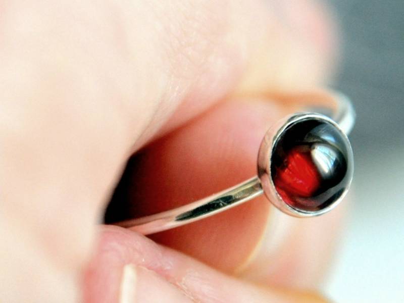 Sterling Silver Ring - Stacking With 6mm Garnet Cabochon Made To Order