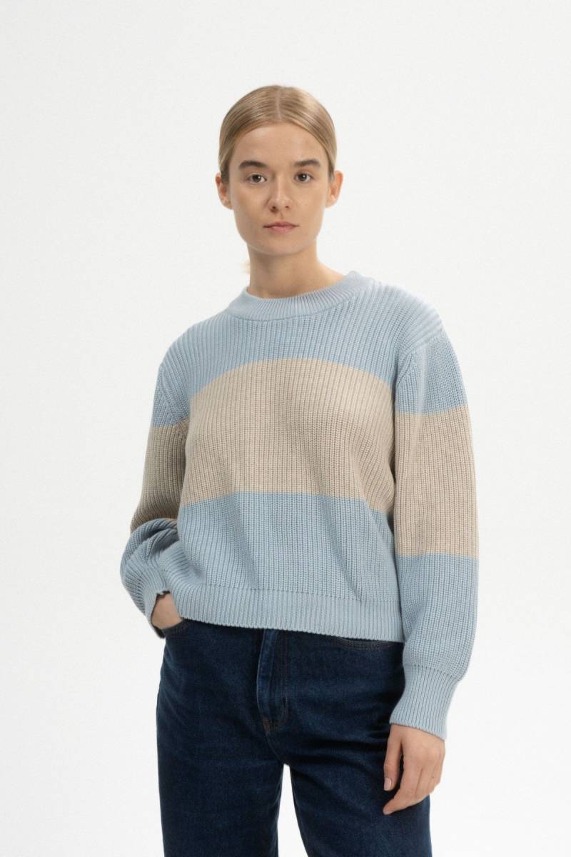 Rippstrickpullover mit Streifenmuster Rundhalsausschnitt Gerippter Kragen gerippte Ärmelbündchen und gerader Saum Entspannte Passform Vorgewaschene Verarbeitung