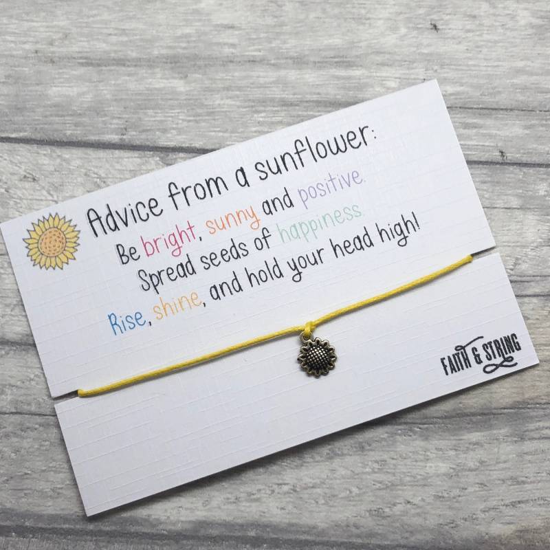 Nur für kurze Zeit, TRACKED 48 UK Versand für nur 99p! Auswahl aus Dropdown-Menü an der Kasse Freundschaftsarmband mit Tibetsilber Charm und Spruch. Liebevoll präsentiert in einem kraft fleck Umschlag für Sie. ☆ 320 mm farbige Wachskordel, geknotet an beiden Enden, präsentiert auf einer 120 mm x 80 mm Postkarte mit Leinenprägung. Kostenlose Personalisierung - "Wenn Sie eine der folgenden Änderungen / Personalisierungen wünschen, teilen Sie uns dies bitte im Feld ""Hinweis an Verkäufer"" mit." ☆ Armbänder können zum einfachen Entfernen verstellbar gemacht werden, was besonders für Kinder praktisch ist. ☆ Alle Personalisierungen sind völlig kostenlos, so dass Sie ohne zusätzliche Kosten den Namen einer Person hinzufügen oder eine Änderung an einem Zitat auf der Karte vornehmen können. ☆ Die Geschenkbotschaften werden auf Etiketten gedruckt und auf den Kraftpapier-Umschlag gelegt. Extra Leistungen - ☆ Wenn du eines unserer Freundschaftsbänder verschenkst, kannst du dich für einen Aufpreis von €2,00 als Geschenkverpackung entscheiden. Ihr Armband wird in einem Kraftpapier-Umschlag komplett mit Geschenknachricht gelegt, bevor es mit Schnur gebunden wird. Produktion und Versand - ☆ Unsere derzeitige Produktionszeit beträgt 1-3 Tage. ☆ Beim Kauf mehrerer Armbänder kombinieren wir automatisch den Versand. ☆ Für Großbestellungen bieten wir ermäßigte Preise an. ☆ Bestellungen aus dem Vereinigten Königreich werden mit der Royal Mail zweiter Klasse versendet und sollten in 2-3 Tagen ankommen. Wenn Ihr Armband nicht innerhalb von 5 Tagen ankommt, kontaktieren Sie mich bitte und ich werde einen Ersatz ausstellen. ☆ Bestellungen aus dem Ausland werden per Royal Mail versandt und sollten in 10-12 Werktagen eintreffen. Wenn Sie eine Sendungsverfolgungsnummer für Ihr Armband wünschen, wählen Sie bitte 'Tracked' in den Versandoptionen aus. Bitte fragen Sie mich nicht nach der Sendungsverfolgung, wenn Sie diese Versandform nicht ausgewählt haben. Ich behalte den Nachweis für alle internationalen Bestellungen und werde einen Ersatz schicken, wenn der Artikel nicht innerhalb von 3 Wochen eingeht. Ich erstatte keine Versandkosten für internationale Bestellungen. ☆ Bei weiteren Fragen stehe ich gerne zur Verfügung Soziale Medien Wir lieben es, Ihre Kundenfotos zu sehen, und führen oft Wettbewerbe durch und bieten Rabatte in unseren sozialen Medien an, also kontaktieren Sie uns und Sie können bei Ihrem nächsten Einkauf sparen! Folgen Sie uns auf: Facebook: FaithandString15 Sonnenblume Charm Freundschaftsarmband Silber Andenken Geschenk