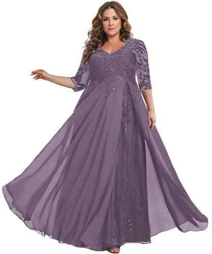 Sincemeet Damen Lange Mutter Der Braut Kleider Chiffon Perlen Spitzenkleid Brautjungfer Mit 1/485 Ärmeln Lang Formelle Abendkleid