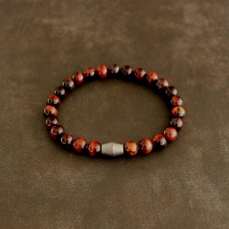 Tigerauge Armband 8 Mm Rote Tigeraugen Schwarzes Silber Magnetschloss Unisex Schmuck Handgefertigt
