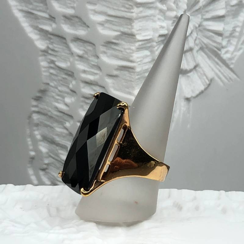 Vintage Statement Cocktailring Mit Einem Großen Facettierten Hämatit