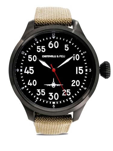 chotovelli Herren-Armbanduhr mit Pilotenwerkzeug, schwarzes Zifferblatt, Saphirglas, verschraubte Krone, Canvas-Armband (3400.3)