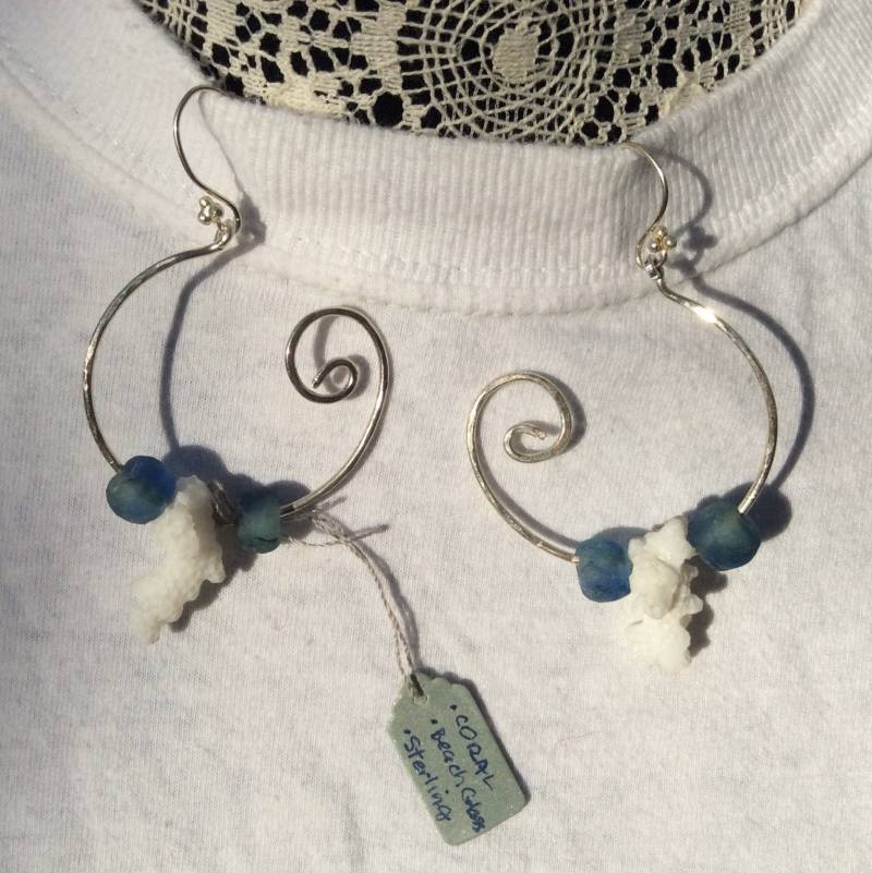 sterling Silber, Korallen Und Meer Glas Ohrringe